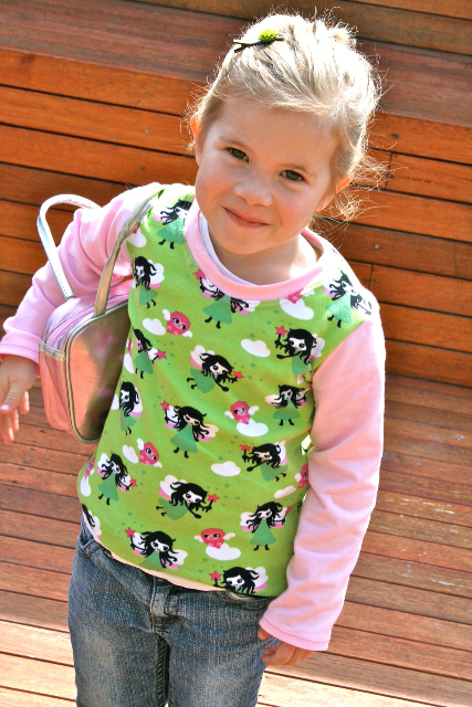 I'm still really enjoying this pattern - I managed to cut and sew 6 new tees for the kids in 1 day! Beats dragging everyone to the shops and coming home with way more than I intended to...would rather spend that money on more fabric!!