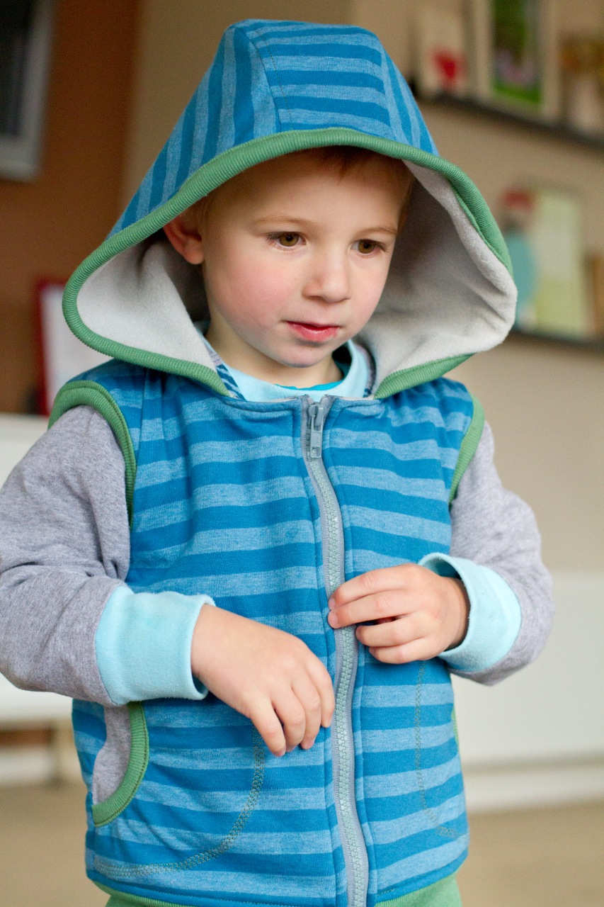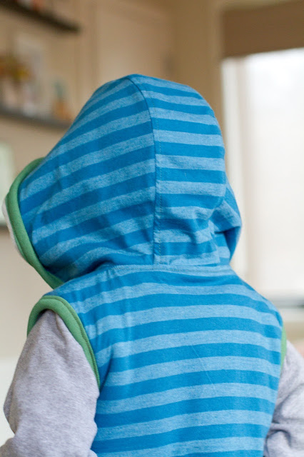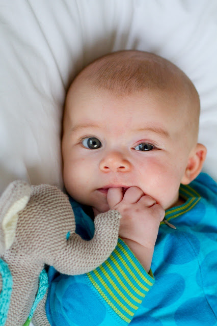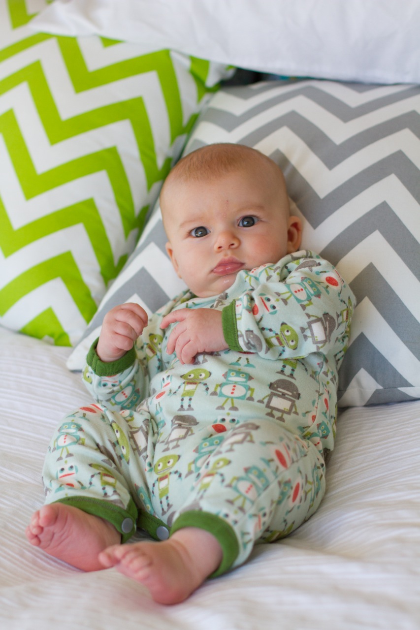 And still growing, growing, growing - chubbier and longer. He has grown out of most of his size 000 clothes now and is into 00. Which is kind of exciting because it means I got to get out all of the size 56cm clothes I sewed for him (expect lots of shot of him wearing them all over the next few weeks!). This little suit is an absolute fave - practical and cute. The zipper is a nice change from all of those snaps and I love the contrast cuffs. (You can read more about the suit here.)